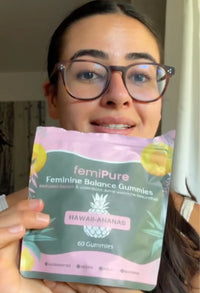 Femipure son gummies diarios diseñados para restaurar y mantener el equilibrio íntimo femenino desde adentro. Con probióticos clínicamente respaldados, extracto natural de piña y vitamina C, ayudan a neutralizar el mal olor, estabilizar el pH vaginal y prevenir molestias recurrentes. Son veganos, sin azúcar, sin gluten ni alérgenos, y con un sabor agradable que hace fácil y práctica su incorporación a la rutina.